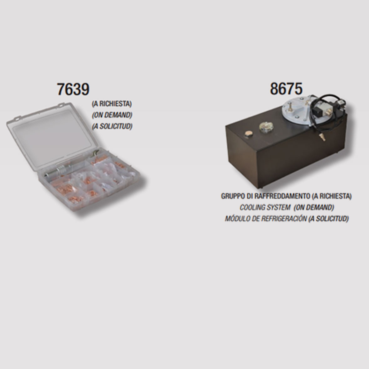 Η μηχανή διατίθεται με όλο τον απαραίτητο βασικό εξοπλισμό σε 2 τύπους αερόψυκτη και υδρόψυκτη.