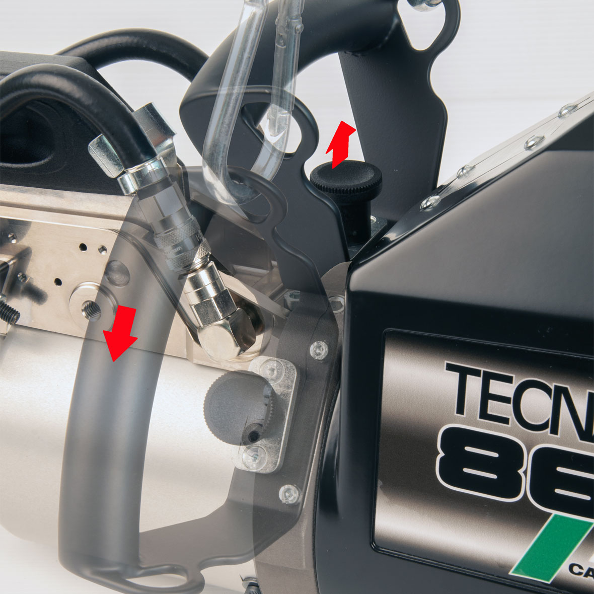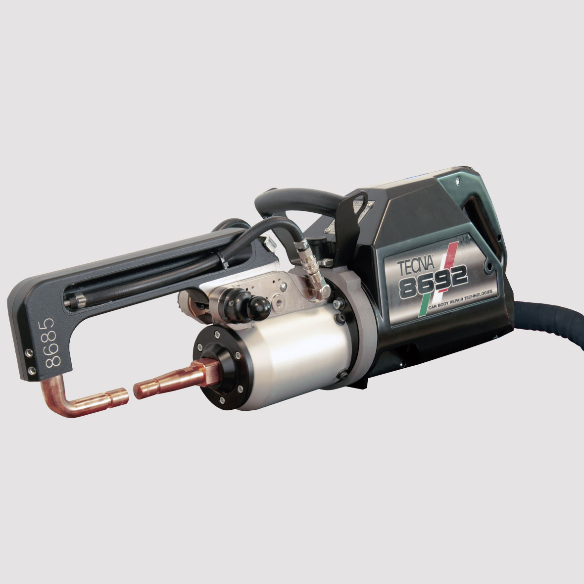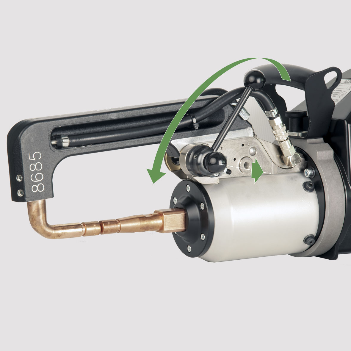 Ο μετασχηματιστής βρίσκεται ενσωματωμένος στο πιστόλι, είναι κατασκευασμένος από την TECNA και ψύχεται με νερό ώστε η απόδοση του να διατηρείται σταθερή.
