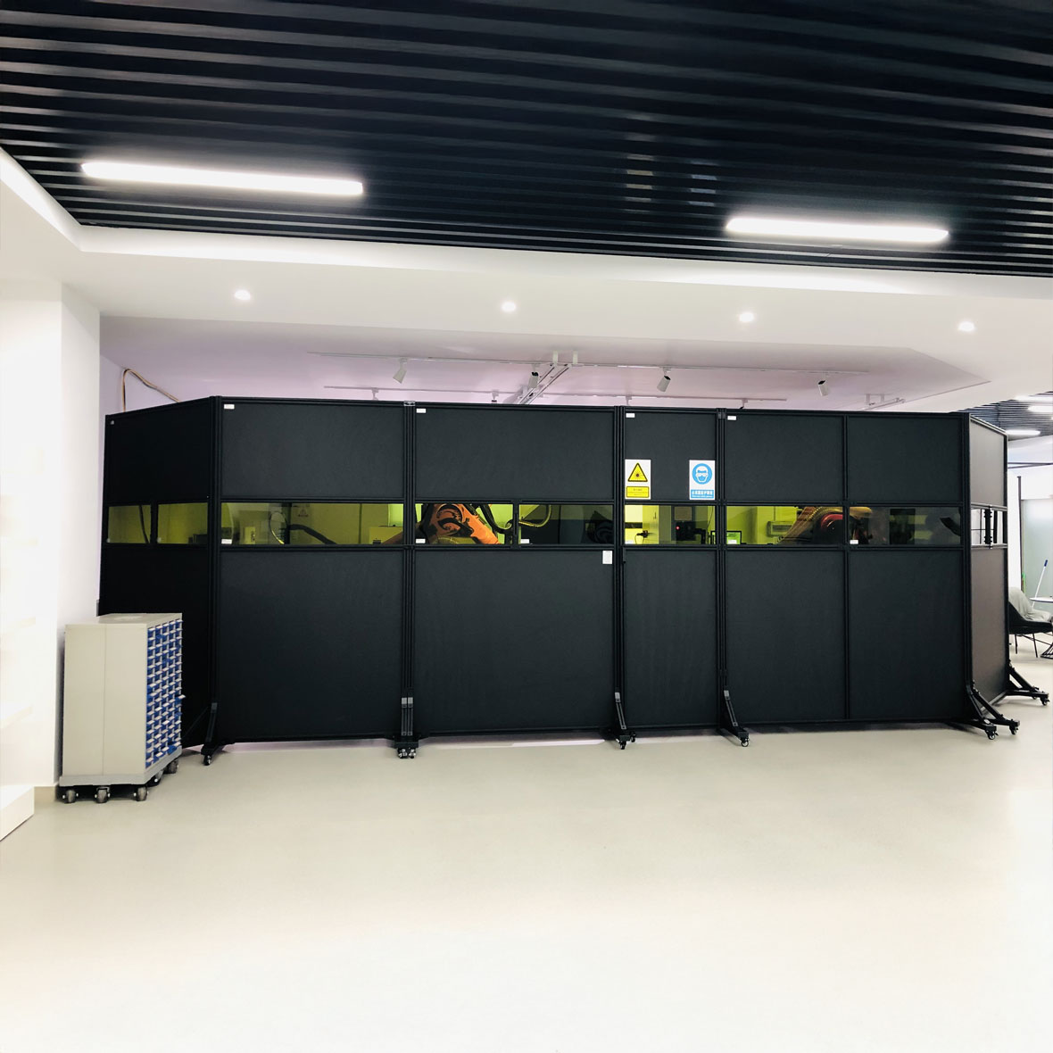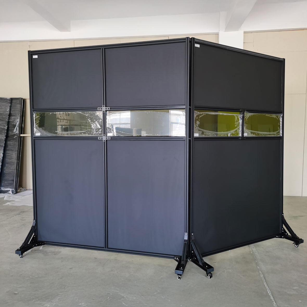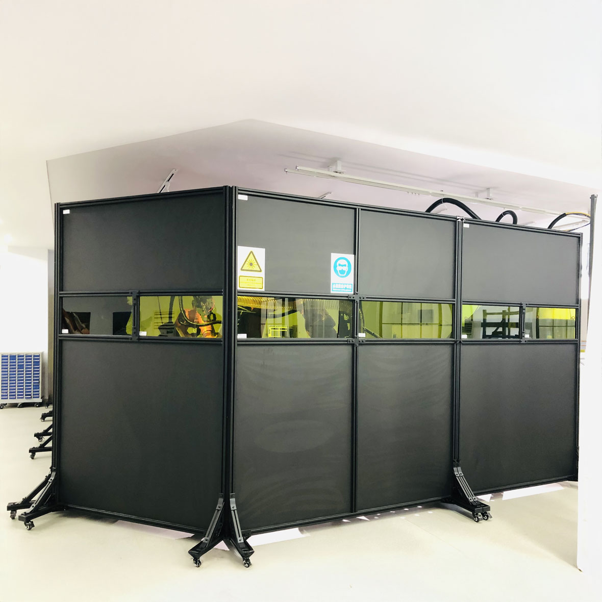 Τα προστατευτικά panel χρησιμοποιούνται προκειμένου να δημιουργήσουμε κλειστό δωμάτιο μέσα στο οποίο γίνονται εργασίες συγκόλλησης με laser η να περιφράξουμε τον χώρο που εργάζεται ο χειριστής ώστε να δημιουργήσουμε ένα τοίχος προστασίας προς τους υπόλοιπους εργαζομένους.